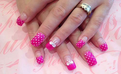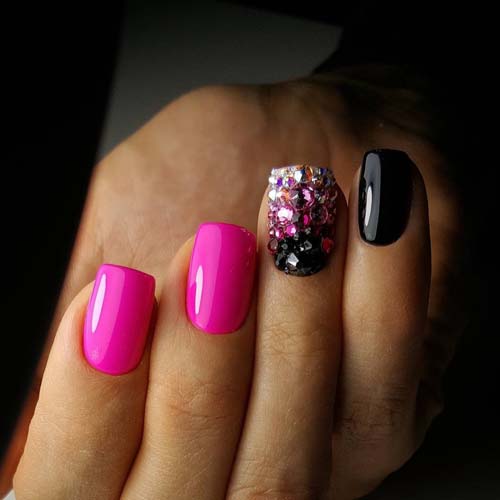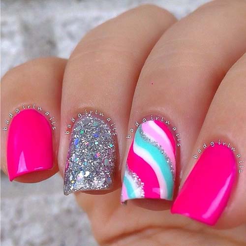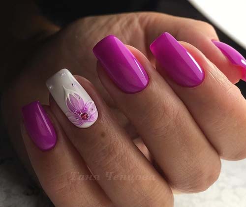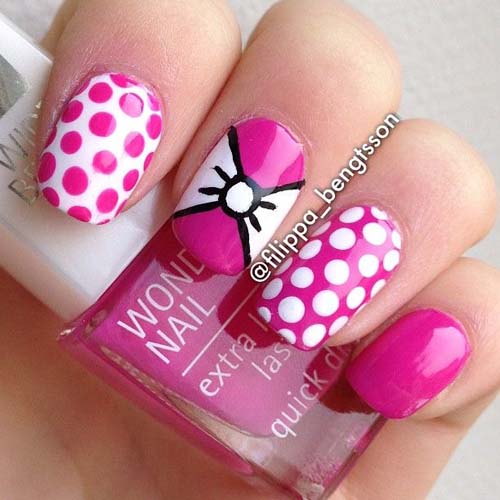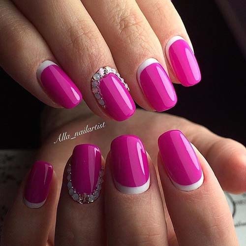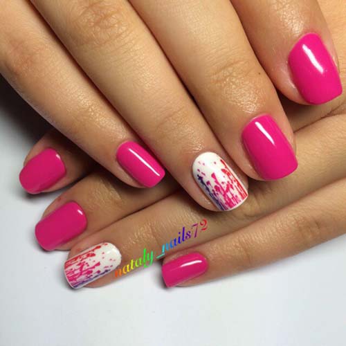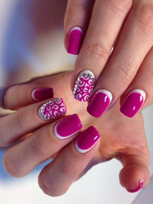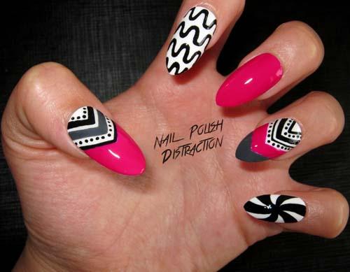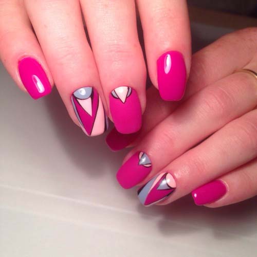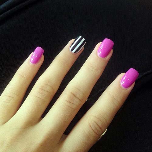 Πέρα από τα μονόχρωμα φούξια νύχια, μπορείτε να κάνετε εντυπωσιακά σχέδια με γραμμές οριζόντιες, κάθετες ή διαγώνιες, είτε με πουά. Συνδυάστε το φούξια μανό σας με λευκό, μαύρο ή μωβ και το αποτέλεσμα θα σας εκπλήξει.