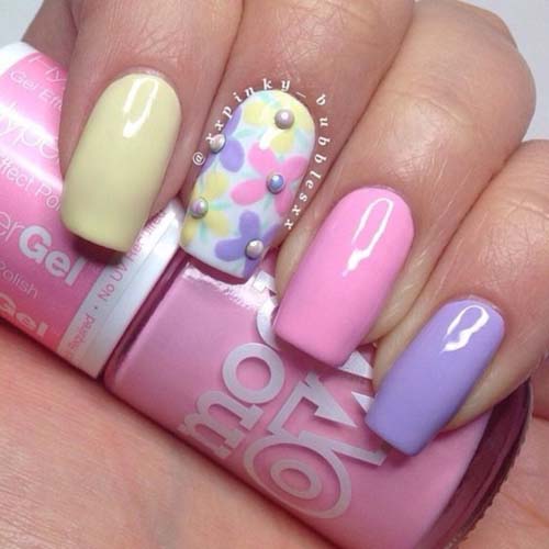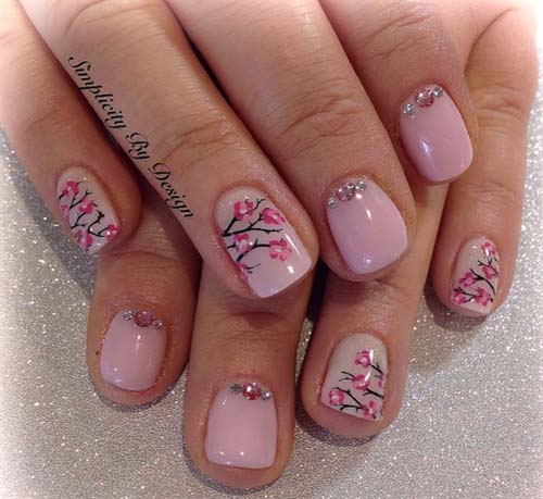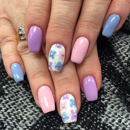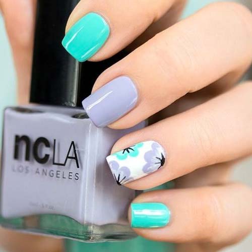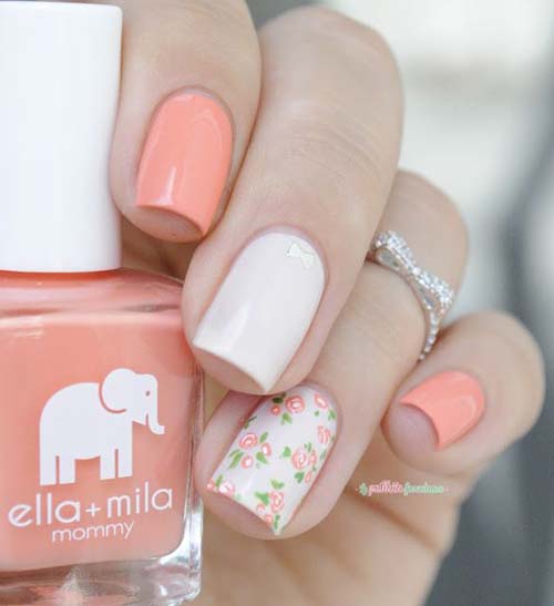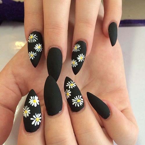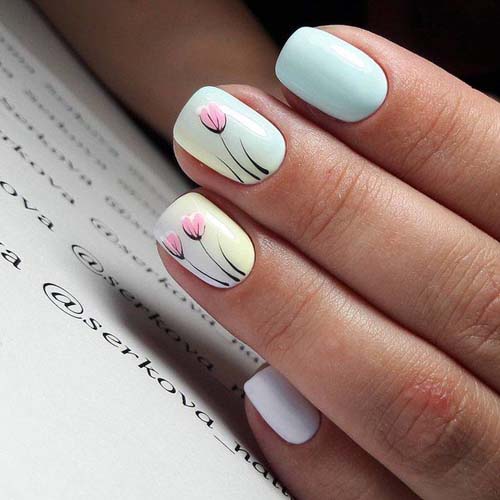 Για να κάνετε τα χαρακτηριστικά ανοιξιάτικα floral nails μπορείτε να σχεδιάσετε τριαντάφυλλα, τουλίπες ή μαργαρίτες σε ένα ή περισσότερα νύχια, σε συνδυασμό με μονόχρωμα. Τα σχέδια με λουλούδια στα νύχια μπορούν να απογειωθούν με διακοσμητικά στρας ή μεταλλικά στοιχεία, όπως και με τον συνδυασμό του με ένα negative space nail art.