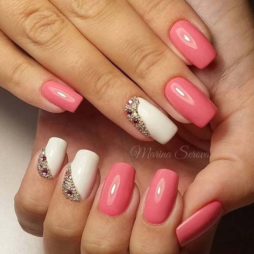 Για λαμπερά σχέδια στα νύχια μπορείτε να χρησιμοποιήσετε ένα βερνίκι glitter σε όποια απόχρωση επιθυμείτε ή να κολλήσετε διακοσμητικά στρας στο μέγεθος, το σχήμα και το χρώμα της αρεσκείας σας. Συνδυάστε το με όλες τις κορυφαίες τάσεις στα νύχια για την εποχή και δημιουργήστε μανικιούρ που κλέβουν τις εντυπώσεις.