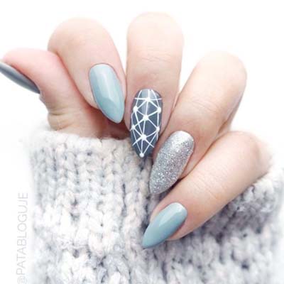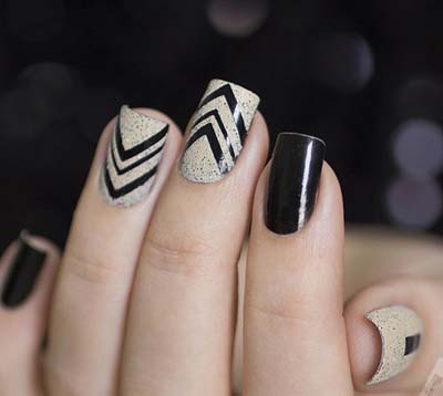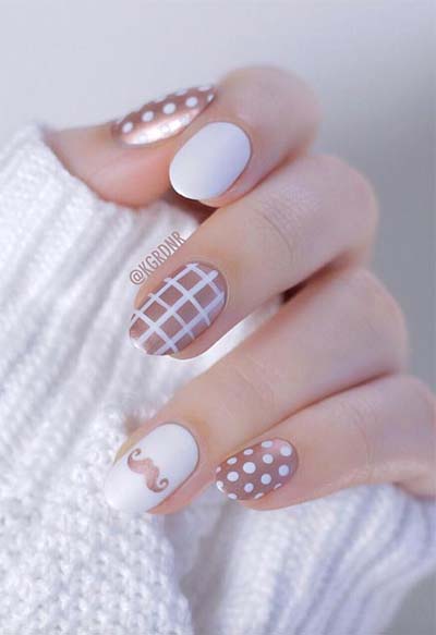 Η πιο απλή εκδοχή αυτού του μανικιούρ είναι τα λευκά νύχια με 1 δάχτυλο βαμμένο εξ ολοκλήρου με χρυσόσκονη. Από εκεί και πέρα, μπορείτε να παίξετε με τις γραμμές ή να ζωγραφίσετε οτιδήποτε σας αρέσει και να κάνετε ένα σχέδιο νυχιών που θα κερδίσει τις εντυπώσεις. Λίγη φαντασία χρειάζεται μόνο!