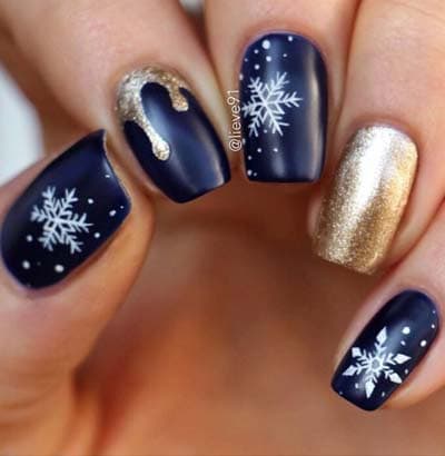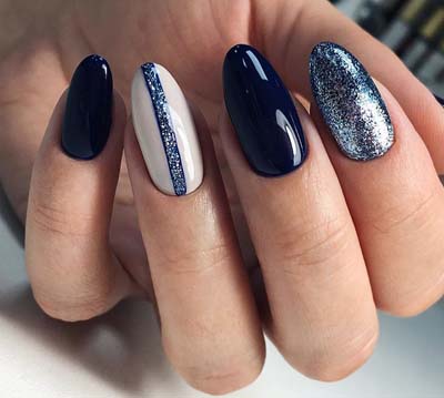 Μιας και μιλάμε για εντυπωσιακά σχέδια στα νύχια για το Δεκέμβριο , δεν θα μπορούσαμε να μην προσθέσουμε στη συλλογή και μανικιούρ με σκούρα βερνίκια, όπως μπλε και μαύρο.