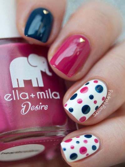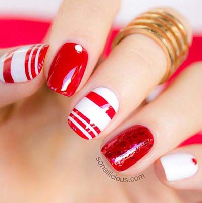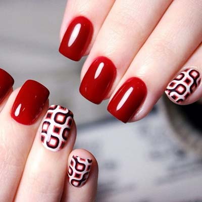 Δημιουργήστε σχέδια με ρίγες ή πουά και κάντε το μανικιούρ σας εκθαμβωτικό με μια κόκκινη απόχρωση μανό. Επίσης, μπορείτε να δοκιμάσετε τα floral nails ή να διακοσμήσετε τα νύχια σας με στρας.