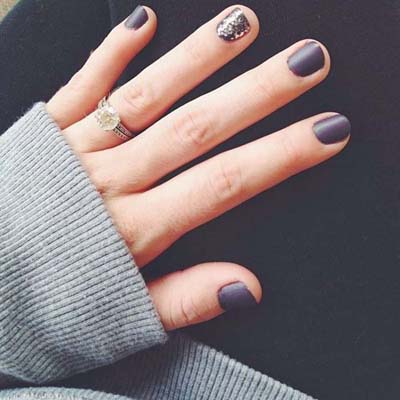 Βέβαια μπορείτε πάντα να κάνετε ένα μονόχρωμο βάψιμο νυχιών με γκρι σκούρο και να στολίσετε μόνο το ένα νύχι με χρυσή χρυσόσκονη.