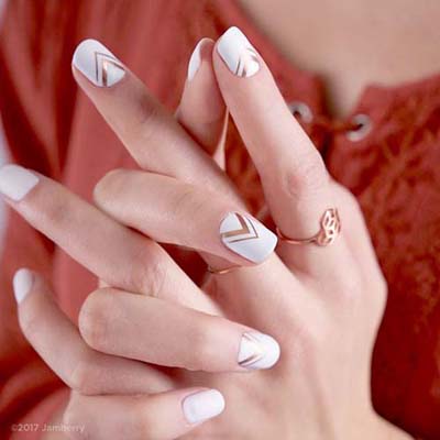 Οι nude αποχρώσεις μανικιούρ και το λευκό βερνίκι μπορούν να αποτελέσουν μια τέλεια βάση για βάψιμο νυχιών. Συνδυάστε το μπεζ, ζαχαρί, άσπρο ή ανοιχτό γκρι μανό με γραμμές σε μεταλλικές αποχρώσεις είτε μαύρες και δημιουργήστε εκπληκτικά σχέδια νυχιών.