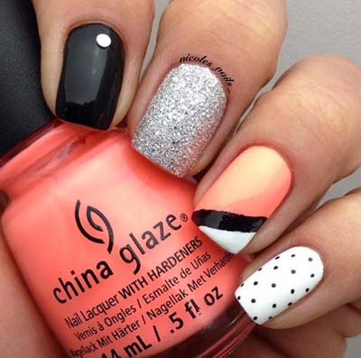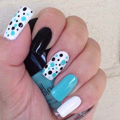 Νύχια διακοσμημένα με πουά και γκλίτερ δείχνουν υπέροχα με το μαύρο βερνίκι, αλλά και η επιλογή ενός ασπρόμαυρου βαψίματος νυχιών είναι εξίσου όμορφη.