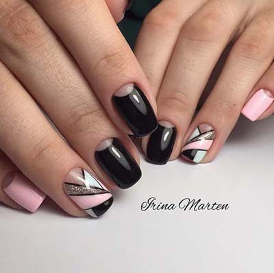 Αν θέλετε όμως ένα πιο ιδιαίτερο και εντυπωσιακό σχέδιο στα μαύρα νύχια σας, μπορείτε να επιλέξετε ένα γεωμετρικό ημιδιάφανο μανικιούρ.