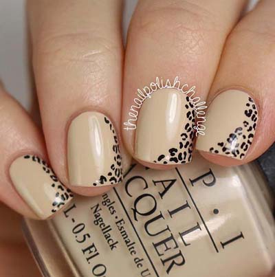 Κι επειδή τα animal prints αποτελούν κορυφαία τάση σε όλους τους τομείς της μόδας, δεν θα μπορούσαν να μην χρησιμοποιηθούν και στο βάψιμο νυχιών. Φτιάξτε λοιπόν το δικό σας λεοπάρ μανικιούρ με μπεζ νουντ βάση και μαύρα σχέδια στα νύχια.