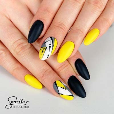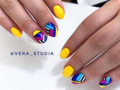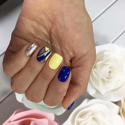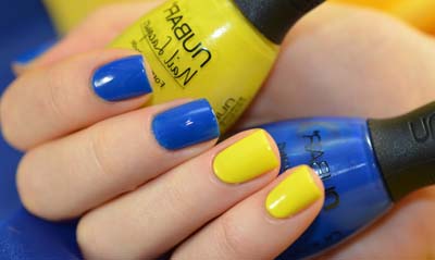Ένας όμορφος συνδυασμός βερνικιών για εντυπωσιακά κίτρινα νύχια είναι με το μπλε. Πηγαίνει απόλυτα με όλες τις αποχρώσεις του, αλλά ο συνδυασμός που ξεχωρίζει είναι το μπλε ηλεκτρίκ με το κίτρινο.