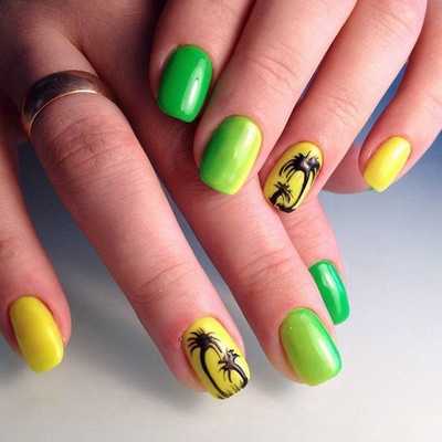 Εντυπωσιακά νύχια σε κίτρινο μπλε χρώμα