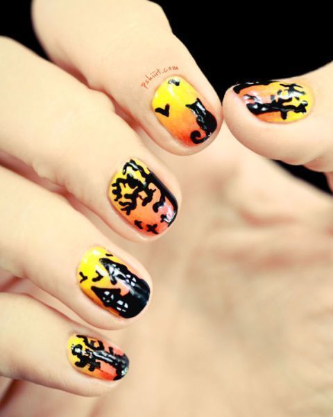 Τρομακτικά νύχια με στοιχειωμένα σπίτια, δέντρα, μαύρες γάτες και φυσικά νυχτερίδες.