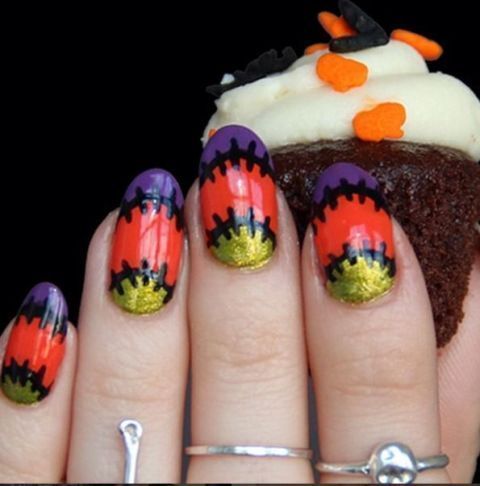 Ποιος λέει ότι τα σκιάχτρα πρέπει να είναι τρομακτικά; Χαρίστε στον εαυτό σας ένα αξιολάτρευτο τρίχρωμο μανικιούρ, με «ραφές».
