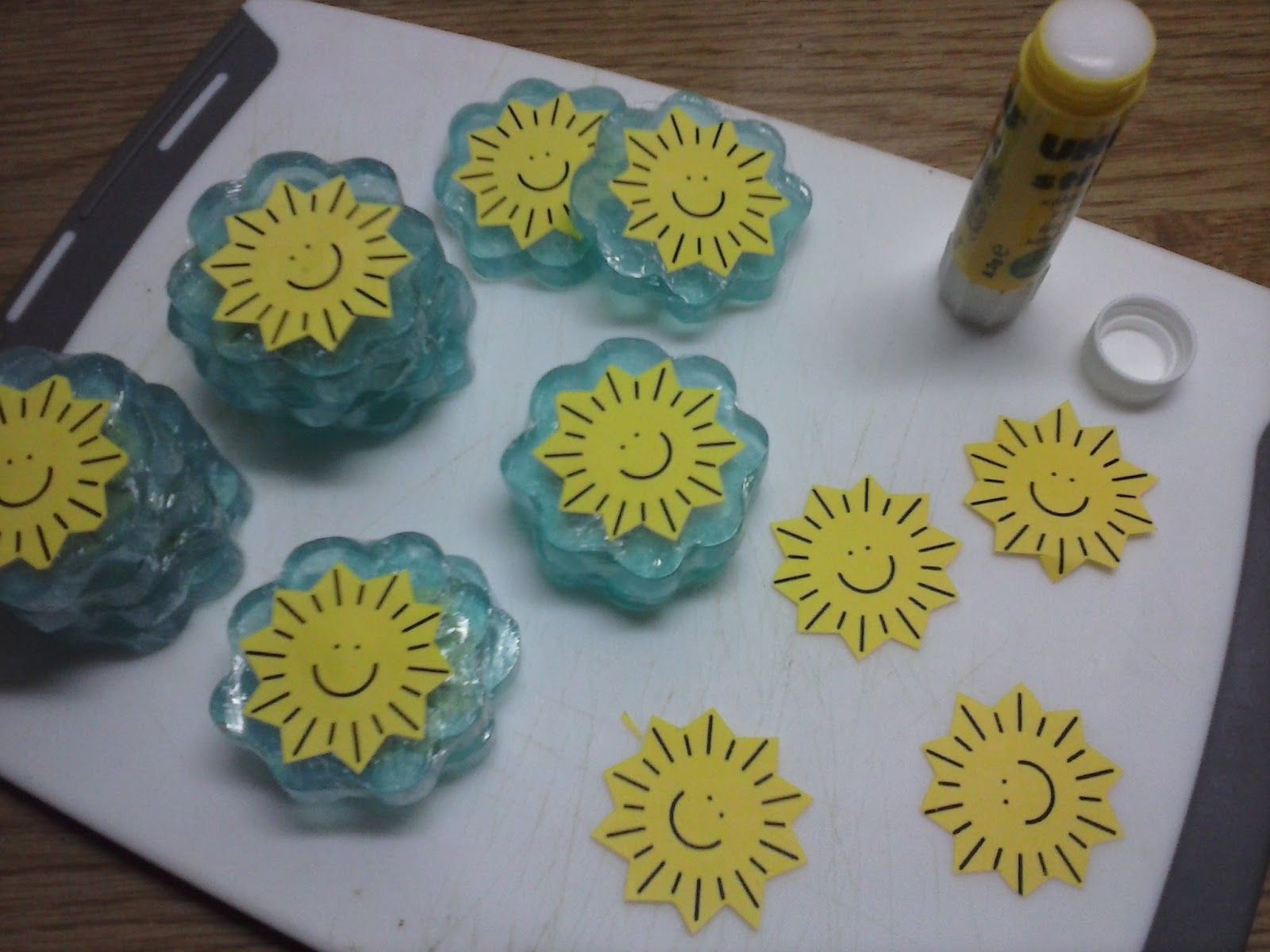 Τα υλικά που θα χρησιμοποιήσετε είναι χρωματιστά τσιγαρόχαρτα Που θα τα κόψετε και θα τα προσθέσετε το λιωμένο σαπούνι γλυκερίνης.Θα ρίξετε το λιωμένο σαπούνι μεσα σε καλουπάκια σιλικονης (και αυτά για τα cupcake κανουν δουλεια)και έτοιμα .Δείτε βήμα βήμα την κατασκευή τους εδώ crafterhoursblog