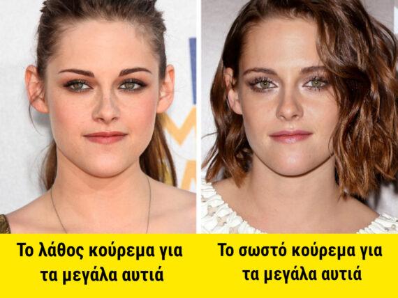 Μακριά μαλλιά αλλά και όλα τα καρέ, είναι σε θέση να κρύψουν αυτήν την ατέλεια. Προτιμήστε μαλλιά με όγκο, οπότε επιλέξτε χτενίσματα που αφήνουν τα μαλλιά σας ελεύθερα και δώστε επιπλέον όγκο με μπούκλες.