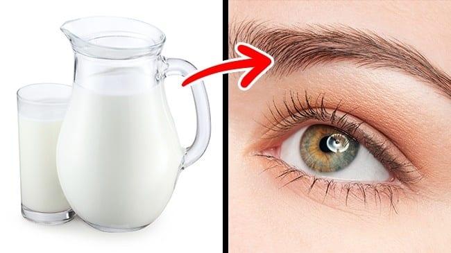 Το γάλα περιέχει πρωτεΐνες, βιταμίνες, ασβέστιο και γαλακτικό οξύ, το οποίο προστατεύει και διεγείρει την παραγωγή κολλαγόνου. Βουτήξτε μια μπατονέτα σε πλήρες γάλα και εφαρμόστε στα φρύδια, όπως σε αυτό το βίντεο. Αφήστε το γάλα να στεγνώσει και στη συνέχεια ξεπλυθείτε με νερό και καθαριστικό προσώπου.