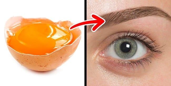 Ο κρόκος αυγού αποτελεί μια πλούσια πηγή βιταμινών και πρωτεϊνών, που ενισχύει την τρίχα σε όλο το μήκος της και την κάνει πιο ογκώδη. Πάρτε ένα κρόκο αυγού, χτυπήστε το και εφαρμόστε πάνω στα φρύδια για 15-20 λεπτά, και στη συνέχεια ξεπλύνετε.