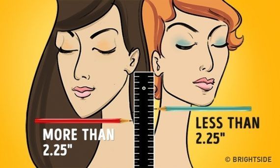 Μετρήστε την απόσταση από το κάτω μέρος του λοβού του αυτιού σας στο σημείο όπου το μολύβι και ο χάρακας θα τέμνονται. Εάν αυτό το ύψος είναι μικρότερο από , τότε το πρόσωπό σας είναι κατάλληλο για κοντά μαλλιά. Αν είναι μεγαλύτερο από 5.57 εκατοστά (2.25 ίντσες), τότε μακριά μαλλιά θα είναι πιο κολακευτική επιλογή για εσάς.