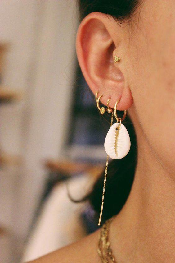 Πολλά μικρά διακριτικά κρικάκια με ένα χρυσό διαμαντάκι να κάνει τη διαφορά και για το τέλος, ένα μικρό κρικάκι με ένα κοχύλι! Μια άκρως καλοκαιρινή πρόταση για τις γυναίκες που λατρεύουν την μόδα και το σικ ταυτόχρονα.