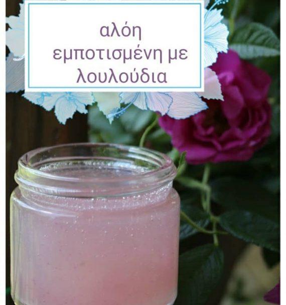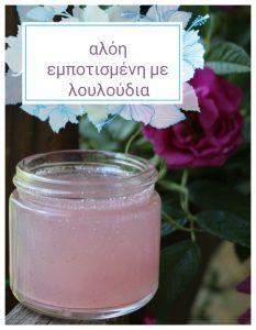 ΥΛΙΚΑ 150 γρ αλόη με συντηρητικό (τυποποιημένη) 1 χούφτα πέταλα λουλουδιών (τριαντάφυλλα, καλέντουλα, πικραλίδα, βιολέτες κλπ)