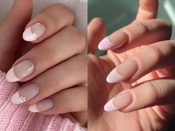 Μπορείς με αφορμή αυτήν την τάση να κινηθείς σε πλήρως φυσικές αποχρώσεις όπως είναι οι παρακάτω. Μία βάση στα χρώματα του δέρματος και ένα γυαλιστερό λευκό στις άκρες που δεν απέχει ιδιαίτερα από το φυσικό λευκό των νυχιών μας.