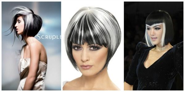 Ασπρόμαυρα μαλλιά! Εντυπωσιακές οι αντιθέσεις μεταξύ της πλατίνας και του μαύρου. Συμμετρικές φράντζες, έντονες ξυραφισμένες άκρες ,γραμμικά καρέ όλα στα δύο ακραία χρώματα της παλέτας. Αν το τολμήσετε σίγουρα δεν θα περάσετε απαρατήρητες.