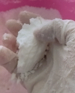 Έπειτα ψεκάζω με το αλκοόλ, μέχρι να έχω την υφή της βρεγμένης άμμου και όταν την πιέζω μέσα στο χέρι μου να σταθεροποιείται.