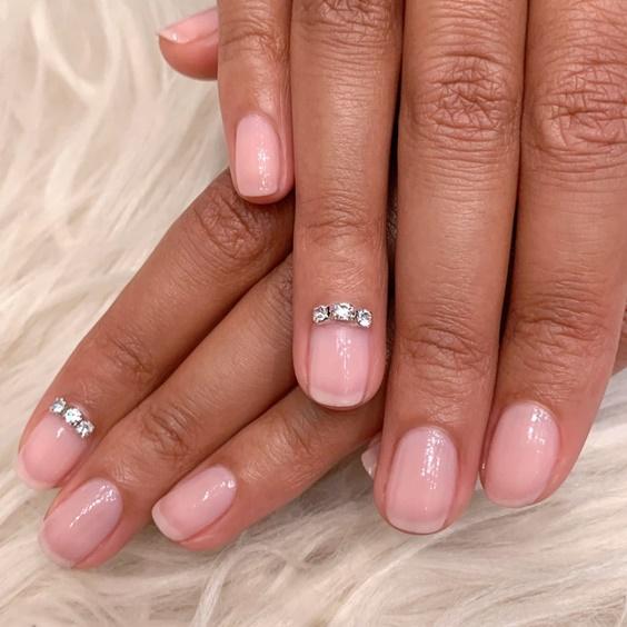 Μια άκρως safe επιλογή για τις γυναίκες που λατρεύουν το σικ. Τα αστραφτερά διαμαντάκια σε μερικά νύχια δίνουν την απαραίτητη λάμψη. Μπορεί να σταθεί άψογα σε μια επίσημη εμφάνισή σου.