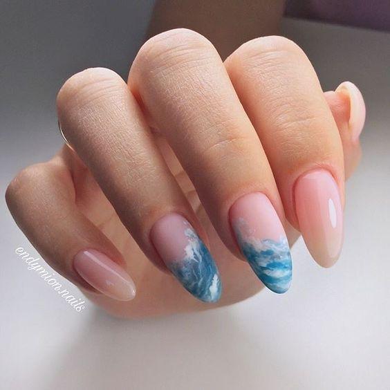 Άλλο ένα διακριτικό, σικ και φυσικά πολύ μοντέρνο σχέδιο μανικιούρ. Μια απαλή ροζ βάση με γαλάζια κύματα να σκάνε στις άκρες των νυχιών σου! Τόσο καλοκαιρινό όσο του αξίζει και τόσο σικ όσο αξίζει σε σένα!