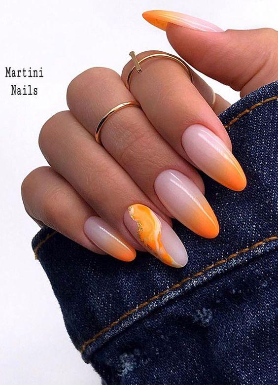 Το πορτοκαλί είναι ένα έντονο, καλοκαιρινό χρώμα. Παρόλα αυτά, μπορεί το γούστο ή η θέση σου στη δουλειά, να μην σου επιτρέπει τόσο extreme αλλαγές. Μπορείς να διαλέξεις λοιπόν μια ροζ απαλή βάση και πάνω σε αυτή να πετάξεις τις απαραίτητες διακριτικές πινελιές. Και μοντέρνα και safe!