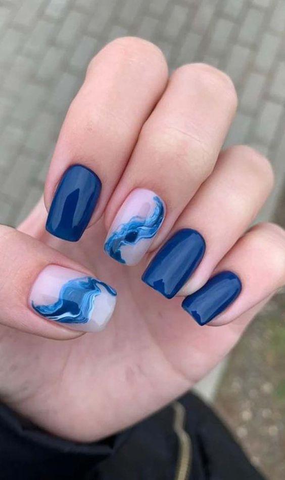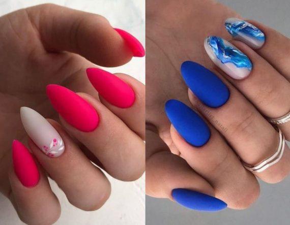 Το ματ μπορεί να στηριχθεί τόσο τον Χειμώνα όσο και το Καλοκαίρι. Διάλεξε λοιπόν το βαθύ μπλε και προτίμησε το σε ματ υφή. Έτσι, το μανικιούρ σου θα είναι πολύ σικ και καλοκαιρινό παράλληλα! Μπορεί να στηριχθεί τόσο σε μια επίσημη όσο και σε μια casual εμφάνιση, ενώ τα περίτεχνα μπλε σχέδια με τις λάμψεις, απογειώνουν την εικόνα!