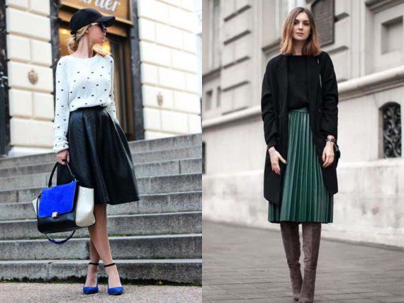 Οι πιέτες ήρθαν και πάλι στην μόδα δίνοντας στις γυναίκες μία παιδικότητα. Μπορείς λοιπόν να επιλέξεις μία καφέ δερμάτινη φούστα για όλες τις περιστάσεις και να την συνδυάσεις με λευκό ή μπεζ πουλόβερ και πανωφόρι. Θα σε γλυκάνει πολύ αυτό το ντύσιμο.