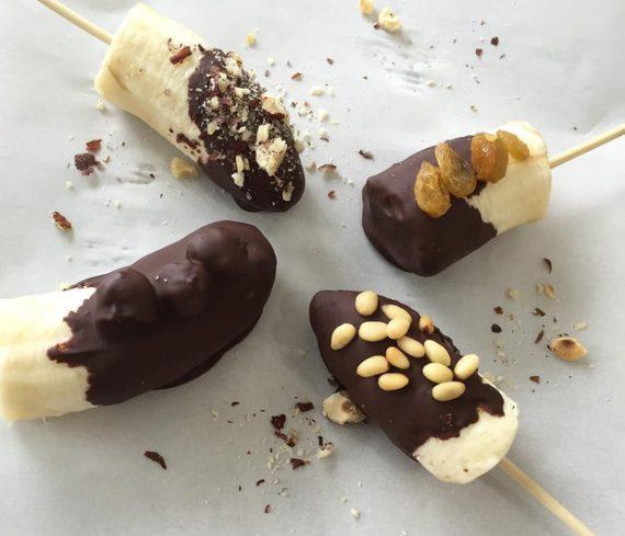 Κομμάτια μπανάνας με λιωμένη μαύρη σοκολάτα: