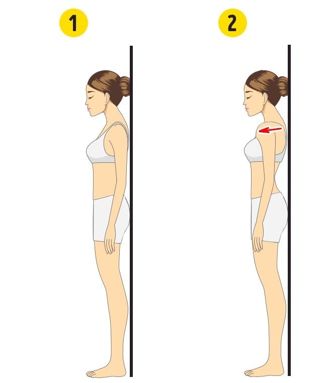 Σταθείτε δίπλα σε έναν τοίχο με τα χέρια σας κατά μήκος των πλευρών σας και τις παλάμες στραμμένες προς το σώμα σας. Σπρώξτε αργά τους αγκώνες σας προς τα πίσω μέχρι να ακουμπήσουν στον τοίχο. Μην αφήνετε τους ώμους σας να πέφτουν προς τα εμπρός ή τους βραχίονες σας να αγγίξουν τον τοίχο. Επαναλάβετε την άσκηση αρκετές φορές.