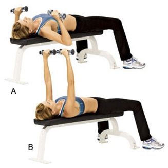 Ξαπλώστε ανάσκελα κρατώντας ένα βαράκι στο κάθε χέρι. Τεντώστε τα χέρια σας προς τα πάνω και κρατήστε για 10 δευτερόλεπτα. Αυτή η απλή άσκηση γυμνάζει τους θωρακικούς μυς.