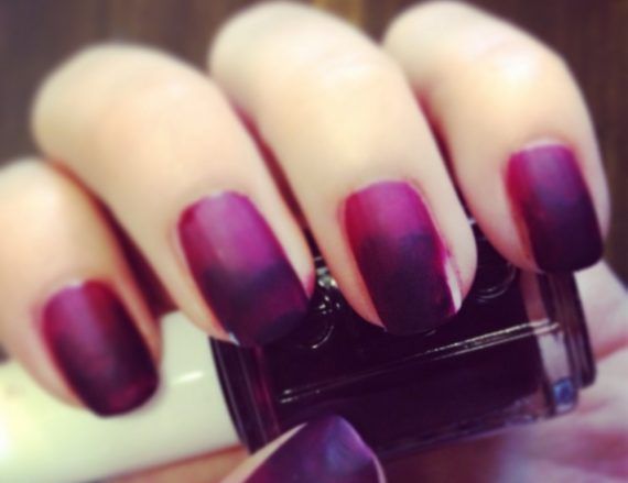 Τι είναι το ombre στα νύχια; Το ombre στα νύχια γίνεται με 2 ή 3 αποχρώσεις, οι οποίες κλιμακωτά σκουραίνουν ή ανοίγουν από το εσωτερικό του νυχιού προς τα έξω. Τα βερνίκια που χρησιμοποιούμε είναι τα απλά, γεγονός που σημαίνει ότι μπορείς να πετύχεις το αποτέλεσμα μόνη σου, με 4 μόνο κινήσεις: