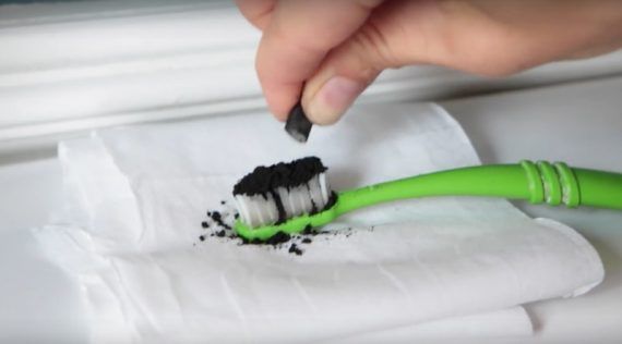 Σκίστε μια κάψουλα ενεργού άνθρακα και ρίξτε τη πάνω στη οδοντόβουρτσα. Προσέξτε να έχετε βάλει μια πετσέτα τριγύρω όταν θα ρίχνετε τον άνθρακα προκειμένου να αποφύγετε το χάος!