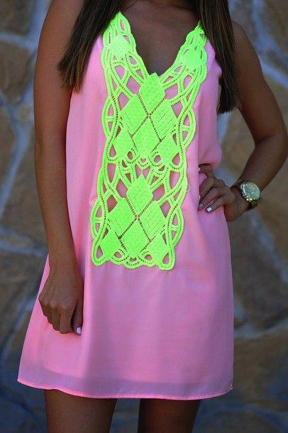 Ένα όμορφο απαλό ροζ φόρεμα με φωσφοριζέ στοιχεία και φυσικά πράσινες φωσφοριζέ λεπτομέρειες για να το απογειώσουν. Θα μπορούσε να είναι η πιο trendy επιλογή ακόμη κι αν είσαι καλεσμένη σε κάποια δεξίωση, όπως γάμο ή βάπτιση! Μη το φοβηθείς.