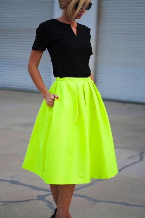 Ένα ρομαντικό ντύσιμο, μπορεί εύκολα να κλέψει τις εντυπώσεις με τον πιο θετικό τρόπο, αν επιλέξεις για την φούστα το φωσφοριζέ χρώμα! Ένας υπέροχος συνδυασμός, που θα μπορούσε να σαγηνεύσει τα βλέμματα σε μια βραδινή σου έξοδο. Είναι για γυναίκες που δεν φοβούνται να πειραματιστούν και να παίξουν με τα χρώματα!