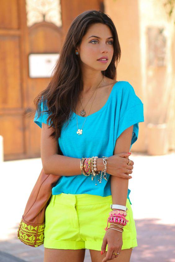 Η παρακάτω εικόνα δεν κατάφερε να φωτίσει την οθόνη του κινητού ή του υπολογιστή σου; Φαντάσου λοιπόν τι πρόκειται να γίνει αν φορέσεις το παρακάτω outfit σε μια απλή βόλτα σου στα μαγαζιά! Ένα t-shirt σε έντονες θαλασσί αποχρώσεις με φωσφοριζέ στοιχεία κι ένα φωσφοριζέ κίτρινο σορτσάκι για να αναδείξεις υπέροχα το μαύρισμα σου!