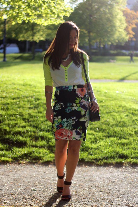 Για σένα που θέλεις να βρίσκεσαι στη μόδα, όμως δεν σ’ αρέσει να τραβάς τόσο έντονα τα βλέμματα της προσοχής πάνω σου, το παρακάτω outfit, είναι αυτό που αναζητάς. Μια υπέροχη φλοράλ μαύρη φούστα που θα αγκαλιάσει το κορμί σου και θα σε κάνει άκρως γοητευτική κι ένα λευκό t-shirt για casual εμφανίσεις με φωσφοριζέ διακριτικές λεπτομέρειες.