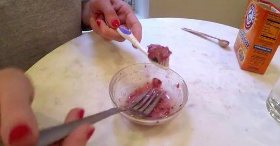 Σύμφωνα με τη Health.com , «Ο συνδυασμός μαγειρικής σόδας-φράουλες ειναι ιδανικος για φυσικο καθαρισμό-γυάλισμα των δοντιών” Αλλά πρέπει να κάνετε αυτή τη θεραπεία μία φορά την εβδομάδα
