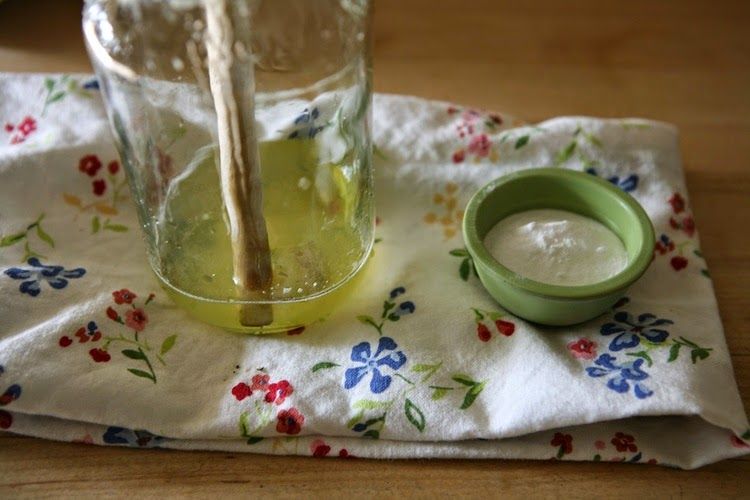 2 κουταλιές σούπας βούτυρο καριτέ 3 κουταλιές σούπας λάδι καρύδας 4 κουταλιές σούπας μαγειρική σόδα διάφορα αιθέρια έλαια (π.χ. δενδρολίβανο, μελισσόχορτο, φασκόμηλο)