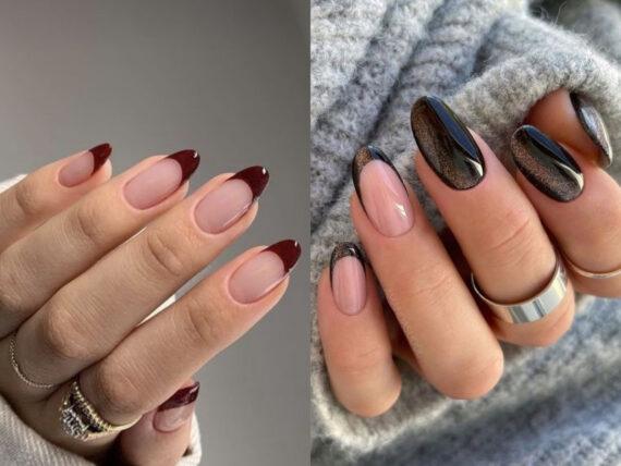 Ιδέες με γαλλικό μανικιούρ σε σκούρες αποχρώσεις: Γαλλικό μανικιούρ σε μπορντό και μαύρο χρώμα