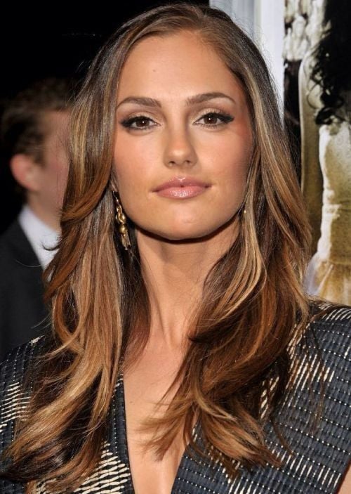 8. Καστανά μαλλιά με έντονες ανταύγειες στο χρώμα της καραμέλας, άλλο ένα χρώμα που ταιριάζει στις μελαχροινές