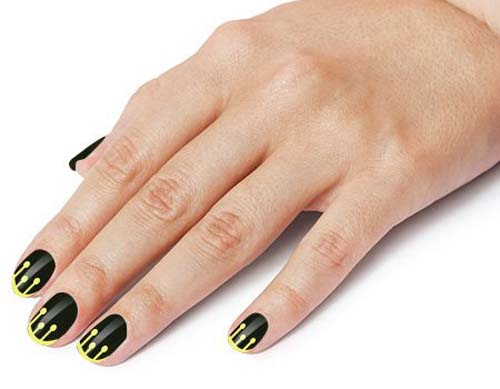 Θα χρειαστείτε 2 χρώματα μανό της αρεσκείας σας, κατά προτίμηση χρυσό και μαύρο που ταιριάζουν περισσότερο στο animal print αυτό σχέδιο. Δημιουργήστε με το χρυσό βερνίκι μερικές κηλίδες και στη συνέχεια με την βοήθεια της οδοντογλυφίδας και του μαύρου μανό κάντε το περίγραμμά τους, χωρίς όμως να το κλείσετε εντελώς. Κάντε δηλαδή δυο ή τρεις γραμμές για κάθε περίγραμμα κηλίδας. Δείτε το ακριβές σχέδιο στην παραπάνω εικόνα.