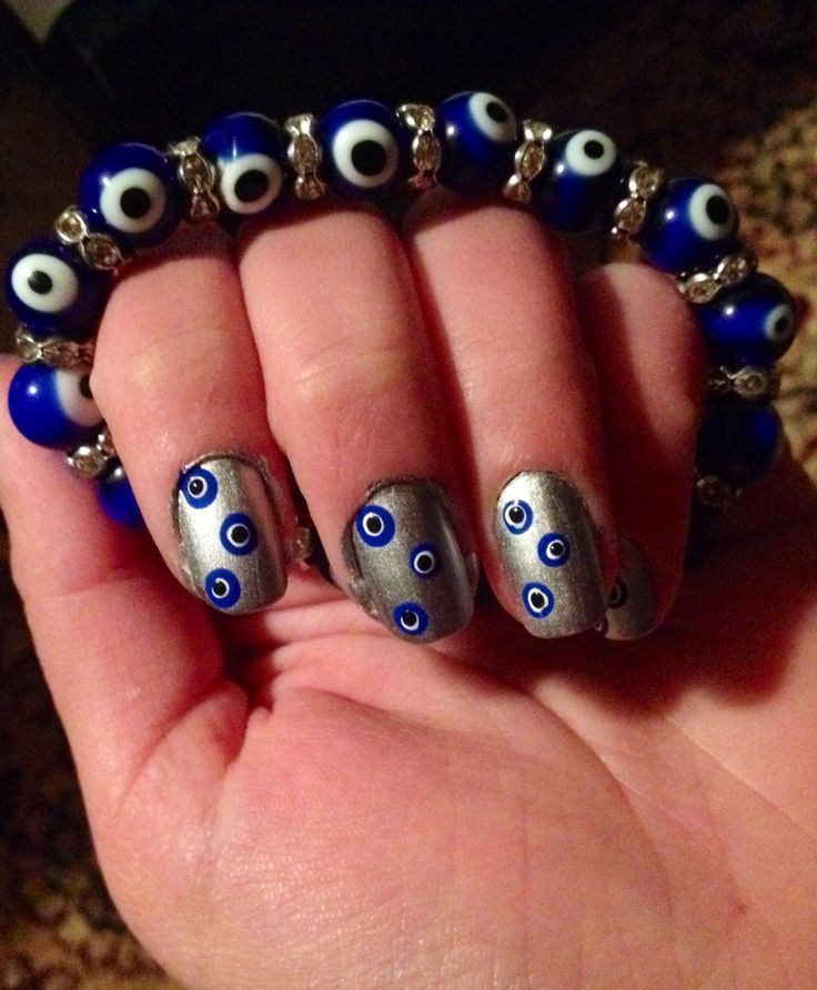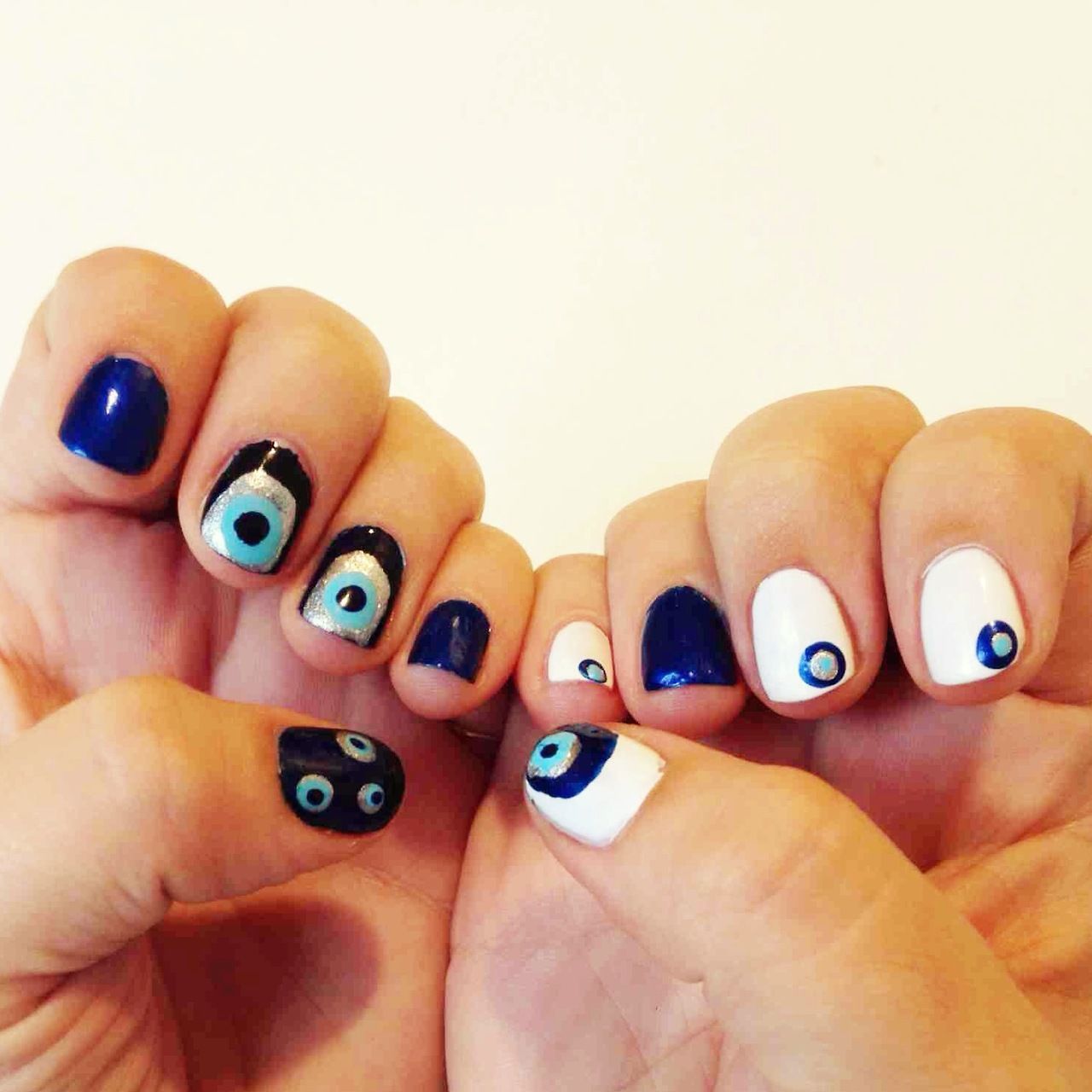 Αυτή είναι η super trendy έκδοση μανικιούρ για το κακό μάτι!Με χρώμα ελληνικό,θα έλεγα ότι αυτή η τεχνική νυχιών έχει μεσαίο επίπεδο δυσκολίας, αλλά με τα σωστά εργαλεία όλοι θα είναι σε θέση να το κάνουν.