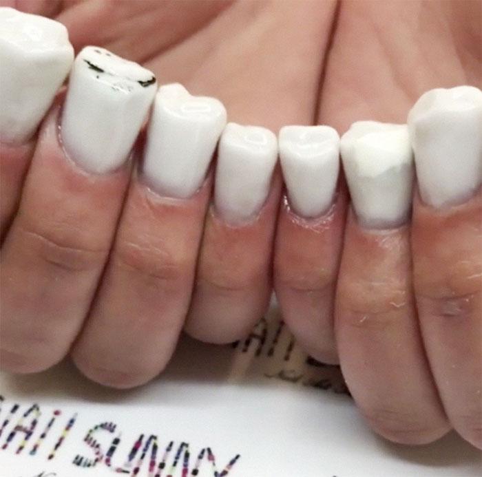 Πολλοί νόμιζαν ότι μετά τα γούνινα νύχια τα είχαν δει όλα. Από ότι φαίνεται όμως δεν είχαν δίκιο, γιατί η καινούργια μόδα με τα νύχια-δόντια είναι ακόμα πιο παράξενη. Και μάλιστα, όχι οποιαδήποτε δόντια αλλά τραπεζίτες.