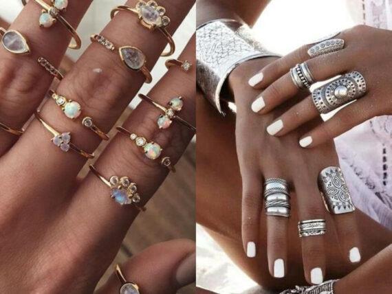 Τα τελευταία τρία χρόνια όμως τουλάχιστον αυτή η τάση έχει αλλάξει. Οι γυναίκες πλέον εξαιτίας της boho αισθητικής, επιλέγουν να κοσμήσουν τα δάχτυλά τους με παραπάνω από 5 και 6 δαχτυλίδια που αποτελούνται από βέρες, πέτρες σε διάφορα χρώματα και άλλα boho σχέδια.