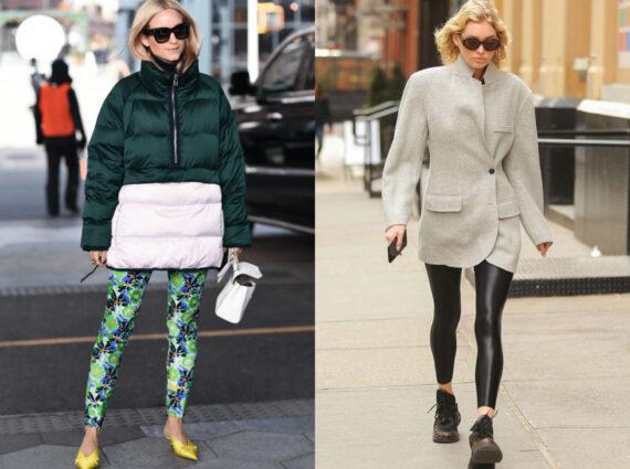 Ιδέες για ντύσιμο με κολάν στο γραφείο: Φλοράλ κολάν με φουσκωτό μπουφάν
