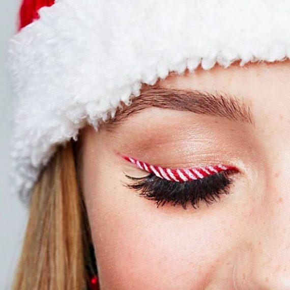 Το eyeliner που μοιάζει με το σχέδιο από το ζαχαρωτό μπαστουνάκι είναι πολύ στη μόδα αυτές τις γιορτές και πρέπει όλες να το τολμήσουμε. Είναι τόσο χαριτωμένο και σίγουρα θα κλέψει τις εντυπώσεις.
