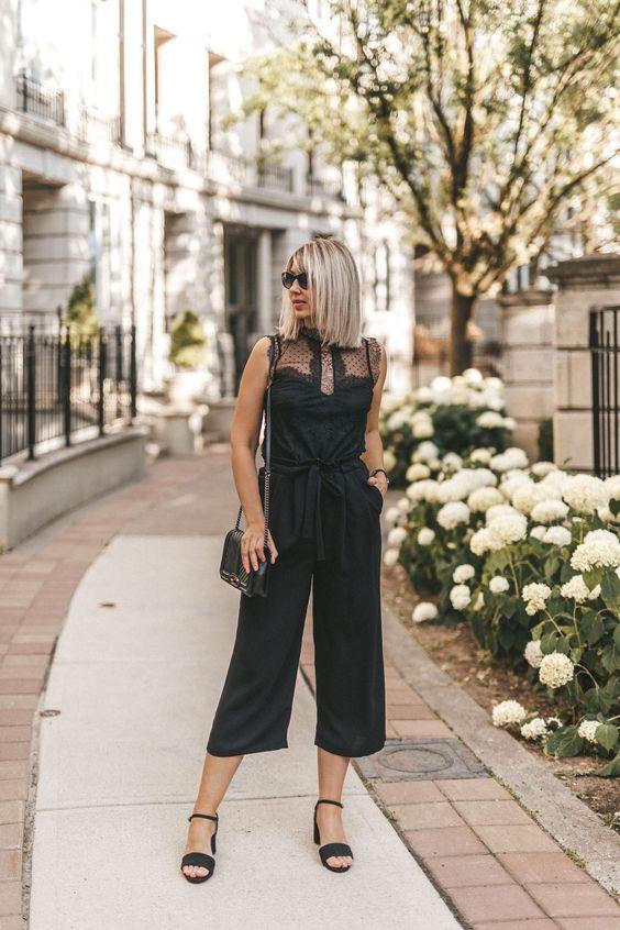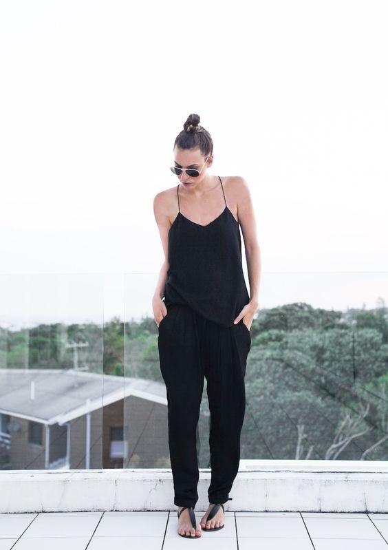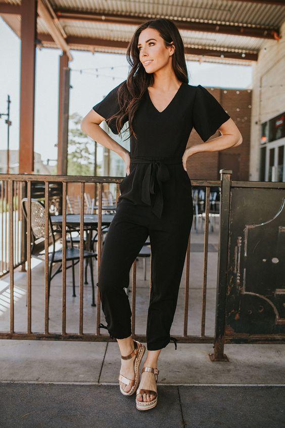 Μια μαύρη ολόσωμη φόρμα και ένα ζευγάρι σανδάλια μπορεί να είναι το outfit που έψαχνες για μια δύσκολη μέρα στη δουλειά. Θα σε κρατήσει άνετη και δροσερή και φυσικά είναι ένα εύκολο outfit που δεν χρειάζεται περίπλοκους συνδυασμούς για να ολοκληρωθεί.